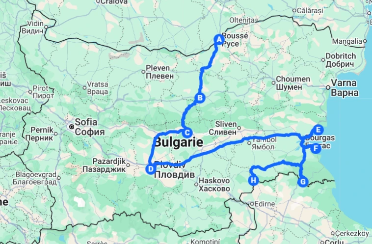 Pour cet itinéraire nous arrivons de Bucarest (la capitale Roumaine). Et nous souhaitons nous diriger vers la frontière Turque.