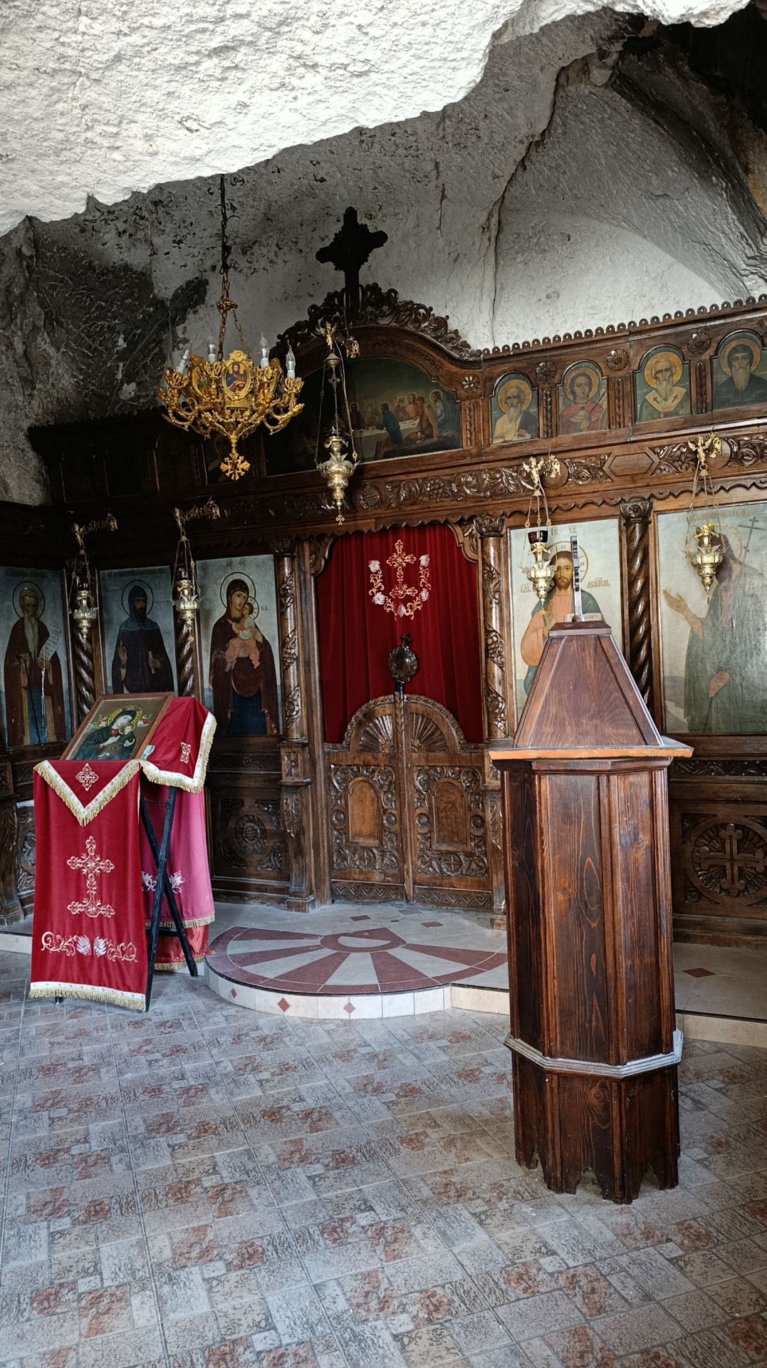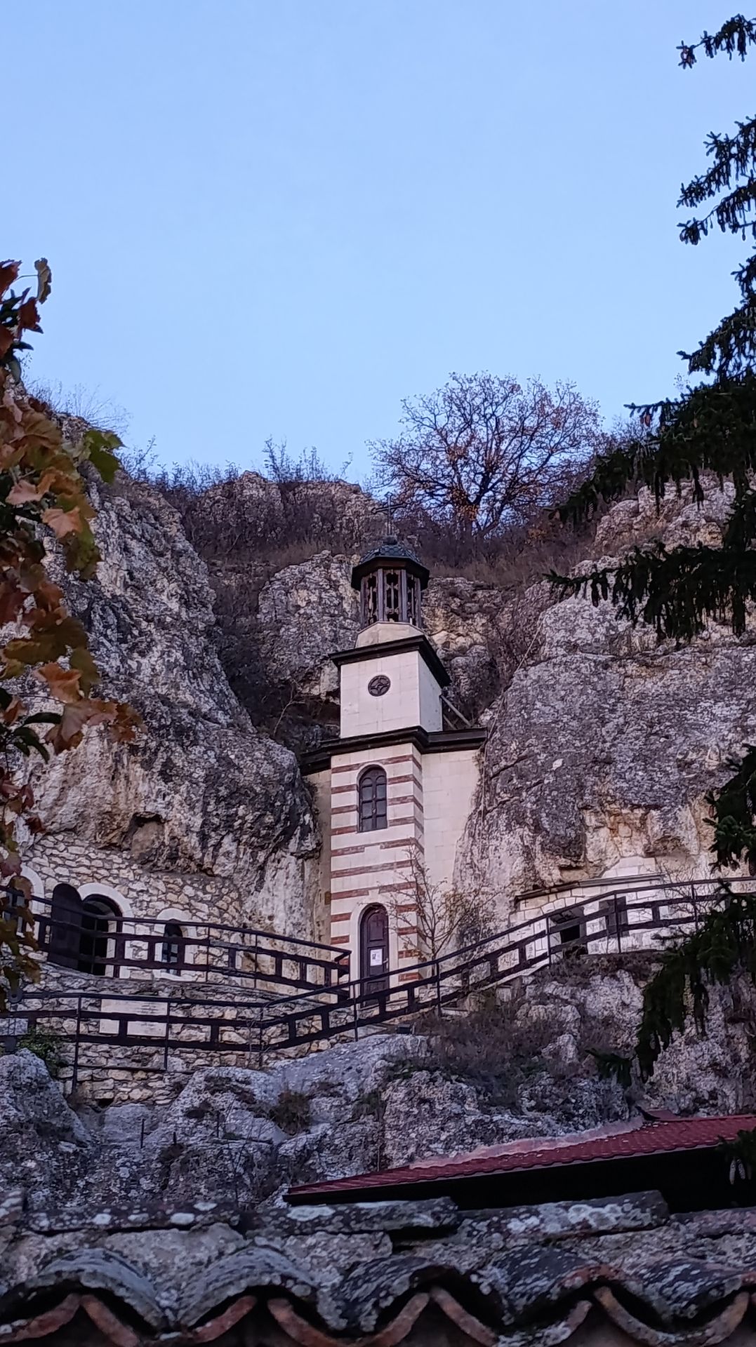 Avant de reprendre la route nous visitons le monastère Dimitar Basarbovski. Il a la particularité d’être construit en partie dans la roche. On s’acquitte des 2euros par personne. Puis on grimpe la roche pour voir les petites chapelles nichées dans celle-ci.