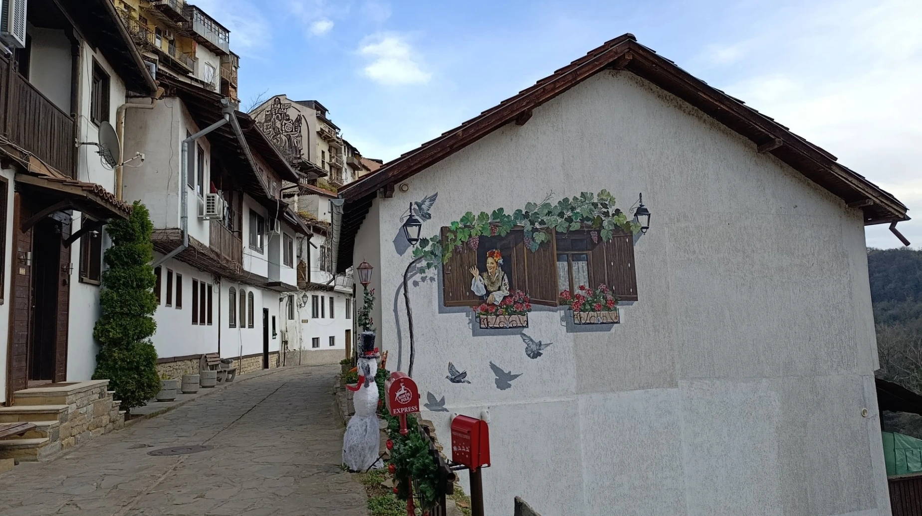 C’est sous la pluie que nous attaquons cette nouvelle journée. Nous faisons un stop à Dryaonovo pour voir son église qui est déjà décorée pour Noel. Et nous marchons 10min pour voir la maison de Lafchieva qui est en fait une maison musée. Il pleut fort, on rebrousse chemin mais j’ai lu de bons commentaires sur sa visite.