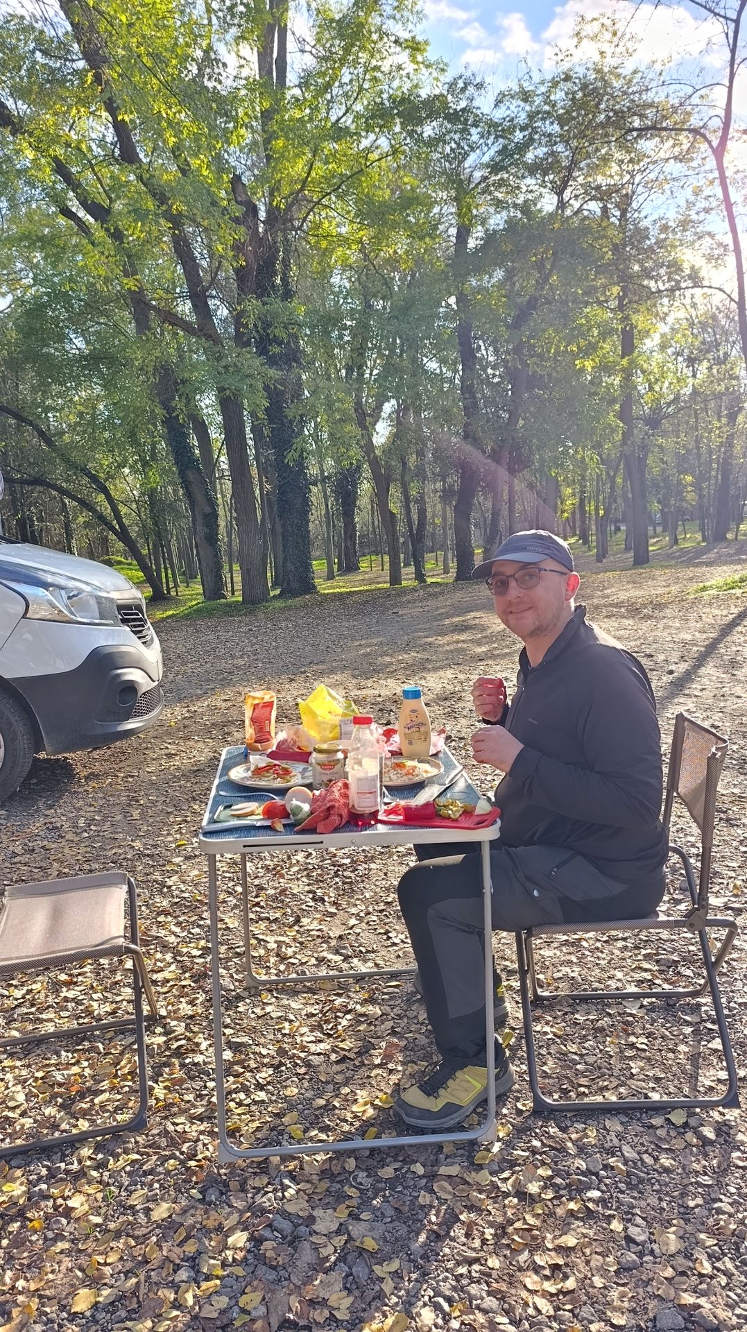 Nous nous garons sur ce P4N #603620 face au Danube pour manger un morceau. On y voit quelques bateaux, des pêcheurs, quelques déchets malheureusement. Mais une belle vue face au fleuve. Le vent souffle et le ciel est menaçant. Ce sera saucisses lentilles dans le van ce midi.