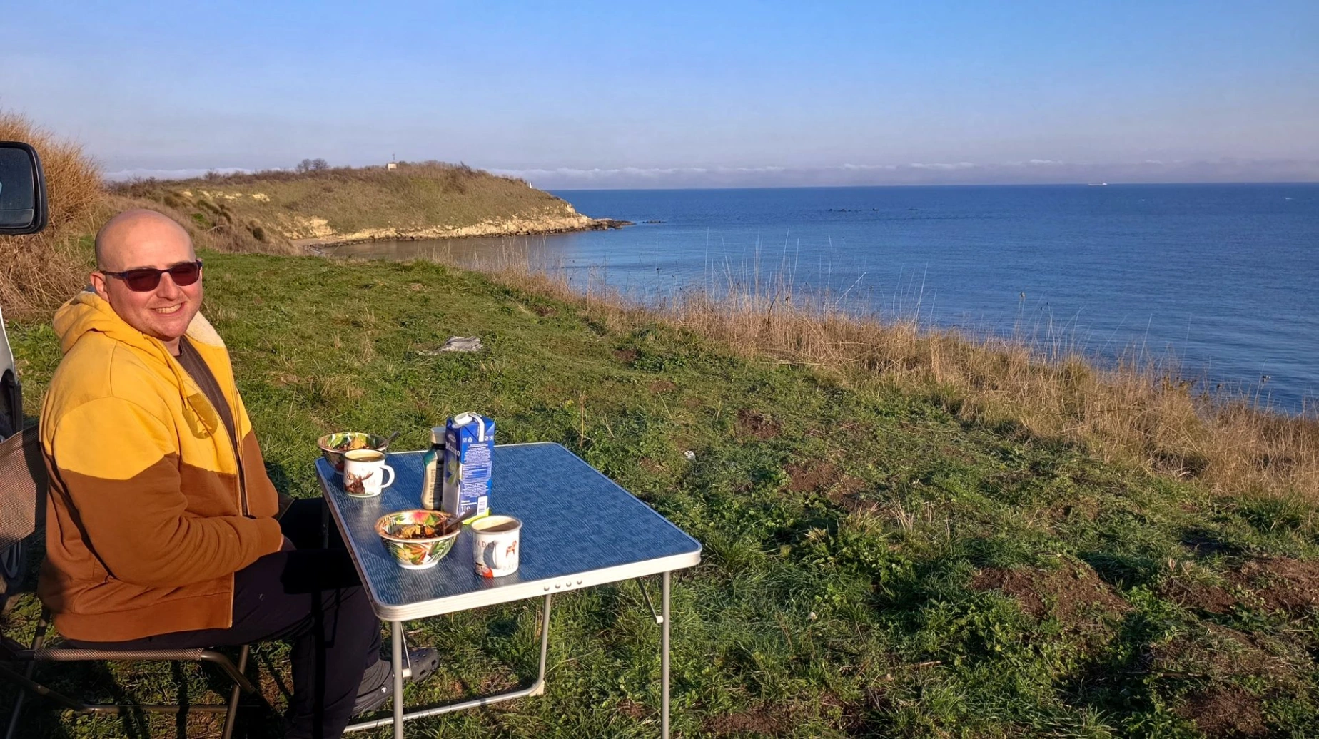 Coté Bulgare, après quelques courses et un plein d’essence. Nous nous dirigeons vers le bord de mer de Roussé pour pique-niquer.
